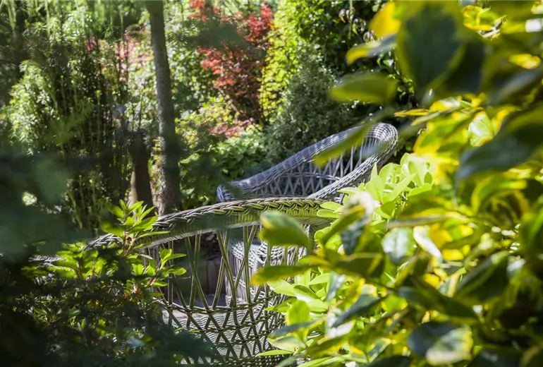 Beim Thema Sitzplatz denken die meisten als erstes an eine großzügige Terrasse, die direkt am Haus und am besten in südlicher Ausrichtung liegt. Aber warum soll das schon alles sein? Erst durch verschiedene Sitzmöglichkeiten und damit variierenden Blickwinkeln erlebt man den Garten viel intensiver. Außerdem kann man so auf unterschiedliche Bedürfnisse und die jahreszeitlichen Veränderungen eingehen. Bei Höchsttemperaturen im Sommer wünscht man sich beispielsweise eher ein schattiges Plätzchen, während man im Frühling und Herbst jeden Sonnenstrahl aufsaugen will. Denken Sie also ruhig weiter als nur bis zur Terrasse. Wie wäre es zum Beispiel mit einem einfachen Klappstuhl und einem Bistrotisch, die schnell mal ans duftende Beet gerückt werden? Oder eine Hängematte, die im lichten Schatten zweier Bäume zum Träumen einlädt? Leichte Möbel, die problemlos zu transportieren sind, geben Ihnen dabei Flexibilität.