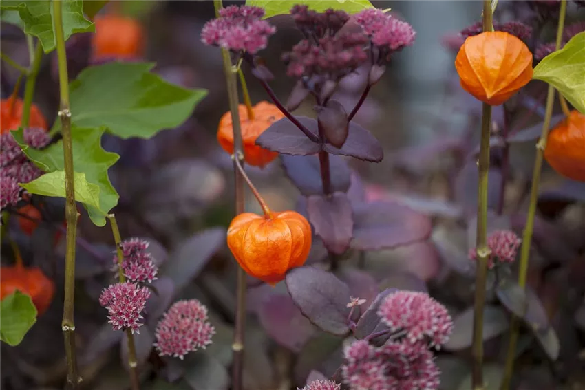 Den Namen geben der Lampionblume die leuchtend orangefarbenen Früchte, die im Herbst zu mehreren an einem Stängel zu finden sind. Die etwa 1 Meter hohe ausdauernde Staude bereichert die Gärten im Herbst. Die Früchte sind beliebtes Beiwerk in Sträußen oder auch eingebunden in bunte Herbst-Kränze.