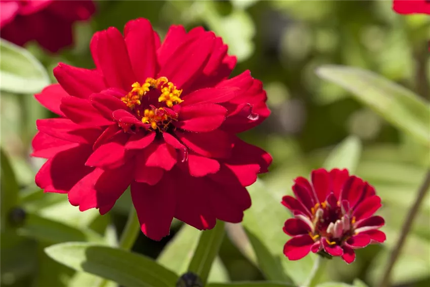 In bunten Herbststräußen dürfen die einjährigen Zinnien nicht fehlen. Sie blühen in den typischen Farben des Herbsts: weiß, leuchtend gelb, orange, rot und rosa – entweder einfach oder gefüllt. Sie bleiben in der Vase sehr lange frisch und ansehnlich.